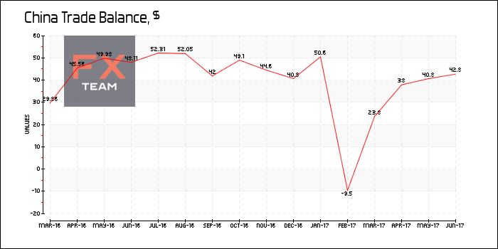 По данным Национального управления статистики Китая, профицит баланса внешней торговли составил 42,8 млрд. долларов в июне по сравнению с 40,8 млрд. долларов в мае. Показатель оказался немного ниже прогнозируемого уровня 42,9 млрд. долларов.