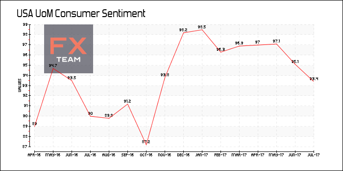 По данным университета Мичигана, индекс настроения потребителей составил 93,1 пункта в июле по сравнению с 95,1 пункта в мае. Ожидалось, что показатель не изменится.