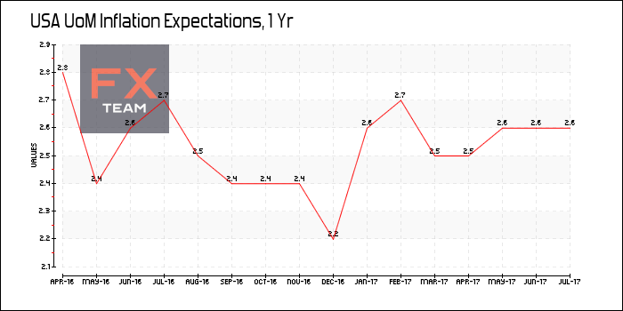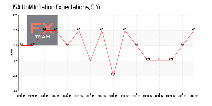 Инфляционные ожидания на год повысились до 2,7% в июле с 2,6% в июне. Ожидаемая инфляция через пять лет составила 2,6% в июле по сравнению с 2,5% в предыдущем месяце.