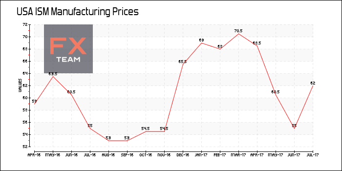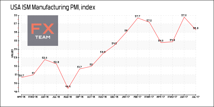 По данным института ISM, индекс активности в производственном секторе снизился до 56,3 в июле по сравнению с 57,8 в предыдущем месяце.