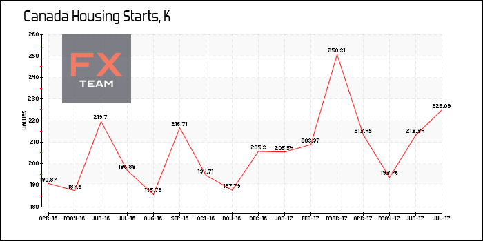 Число закладок новых фундаментов в Канаде повысилось с учетом сезонного фактора до отметки 222,324 тыс. в июле по сравнению с 212,948 тыс. в предыдущем месяце.