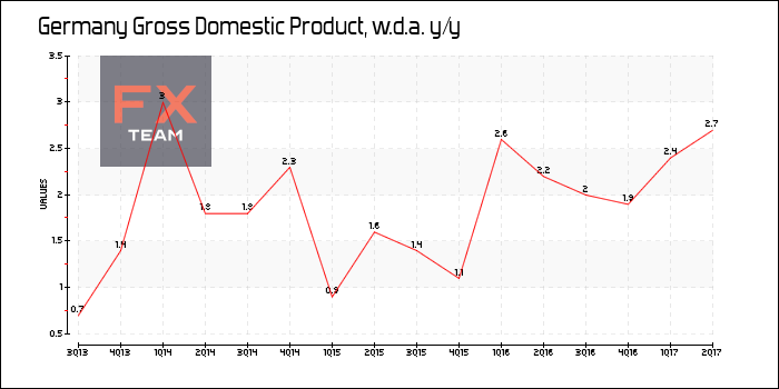 В годовом выражении темпы экономического роста в Германии ускорились до 2,1% во втором квартале по сравнению с 2,0% в предыдущем квартале.