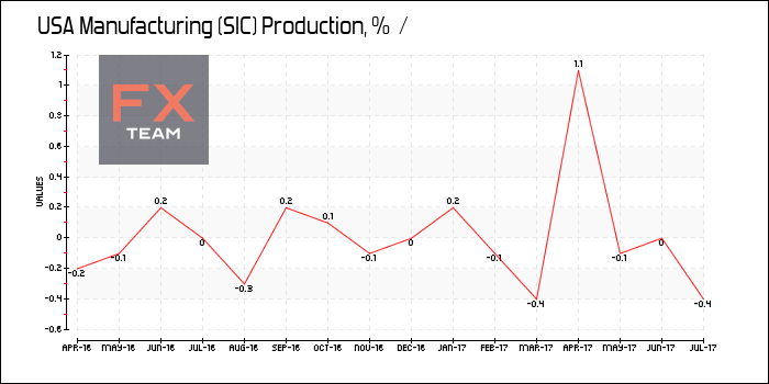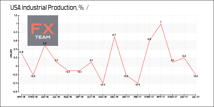 По данным Федеральной резервной системы, объем промышленного производства США увеличился на 0,2% в июле в месячном исчислении после повышения на 0,4% в предыдущем месяце. Ожидался прирост показателя на 0,3%.