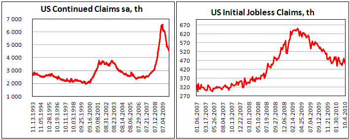 В то же время, число американцев, продолжающих получать пособие по безработице, сократилось за неделю к 10 апреля на 40 тыс. до 4,65 млн. человек. По сравнению с аналогичным периодом прошлого года этот показатель упал на 21%.