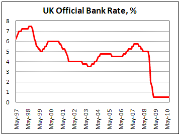 Напомним, что в последний раз Банк Англии понизил ключевую ставку на 50 базисных пунктов до уровня 0,50% на заседании 5 марта 2009 года. Программа по покупке активов была начата 5 марта 2009 года. В последний раз объемы были увеличены на 25 млрд. фунтов стерлингов до 200 млрд. фунтов стерлингов на заседании 5 ноября 2009 года.
