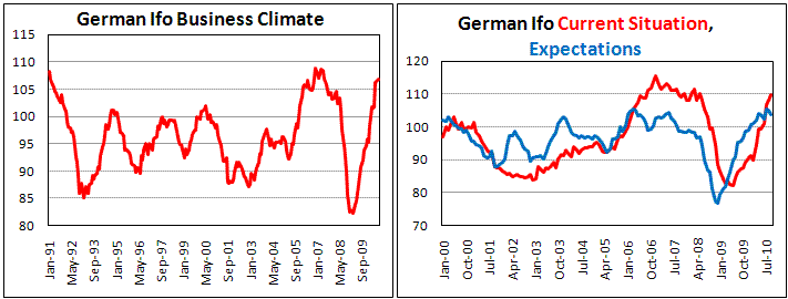 Индикатор оценки текущих условий Ifo повысился за сентябрь с 108,2 пункта до 109,7 пункта при прогнозе 108,7 пункта.