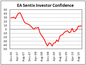 Индикатор уверенности инвесторов Sentix для еврозоны составил 8,8 пункта за октябрь по сравнению с 7,6 пункта месяцем ранее. Уровень роста незначительно превзошел ожидания аналитиков, прогнозировавших улучшение индекса до 8,3 пункта.