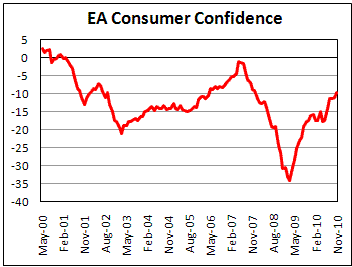 По предварительной оценке, индикатор потребительской уверенности еврозоны составил -9,5 пункта за ноябрь по сравнению с -10,9 пункта в октябре, сообщает Еврокомиссия.