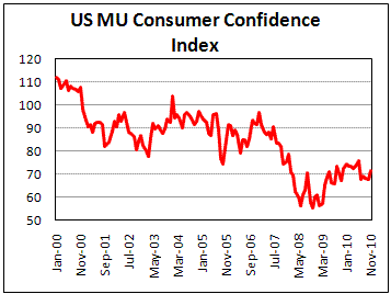 Публикуемый Университетом Мичигана индекс настроений потребителей повысился в ноябре до отметки 71,6 после 67,7 в октябре.