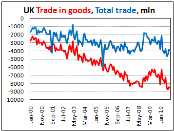 Дефицит торгового баланса без учета торговли со странами ЕС составил £5.004 млрд. за октябрь против £4.545 млрд. в предыдущем месяце. Аналитики прогнозировали увеличение отрицательного сальдо до £4.500 млрд.