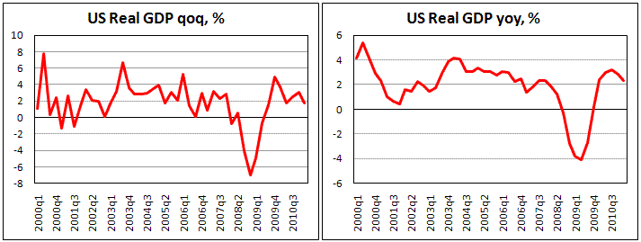 Индекс валового внутреннего продукта (ВВП) США вырос на 1,8% за первый квартал 2011 года, сообщает Бюро экономического анализа. Аналитики прогнозировали увеличение показателя на 1,9%.