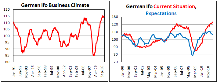 Индикатор условий деловой среды Германии, рассчитываемый немецким экономическим институтом Ifo и отражающий перспективы развития немецкой и европейской экономики, составил 114,5 пункта в июне по сравнению с 114,2 пункта в предыдущем месяце. Аналитики прогнозировали снижение показателя до 113,6 пункта.