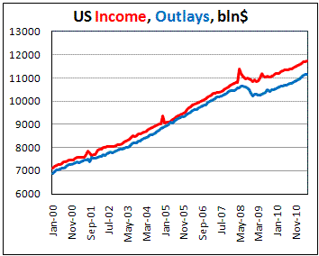 Личные доходы возросли на 0,3% в мае. Эксперты прогнозировали рост потребительских доходов и расходов на 0,3% и на 0,1% соответственно. Уровень сбережений повысился с 4,9% до 5,0% в отчетном периоде.