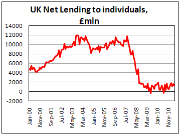 Объем чистых займов частным лицам составил 1,3 млрд. фунтов стерлингов в мае против 1,6 млрд.
