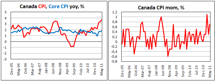 Потребительские цены в Канаде в годовом выражении возросли на 3,7% в мае. Темпы потребительской инфляции оказались самыми значительными с марта 2003 года. Отметим, что в апреле данный показатель составлял 3,3%.