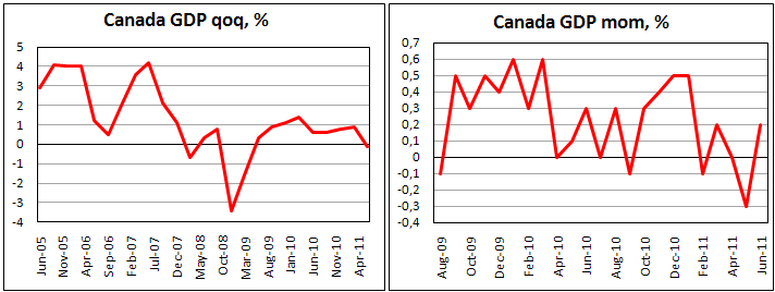 Реальный ВВП Канады сократился на 0,1% во втором квартале текущего года после роста на 0,9% в первом квартале.