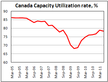 Емкость использования производственных мощностей в Канаде сократилась во втором квартале в связи с тем, что местные предприятия столкнулись с перебоями поставок из-за цунами в Японии.