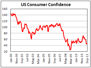 По данным некоммерческой организации Conference Board, индекс доверия потребителей повысился до отметки 45,4 в сентябре по сравнению с 45,2 в августе. Напомним, что в прошлом месяце показатель упал на фоне обеспокоенности относительно состояния рынка труда и госдолга США.