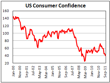 По данным организации Conference Board, пессимизм американских потребителей относительно текущих и будущих экономических условий усилился в октябре. Показатель доверия потребителей упал до рекордно низкого уровня с марта 2009 года.