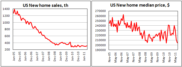Средняя цена нового дома снизилась на 3,1% до $204,4 тыс., оказавшись на самом низком уровне с октября прошлого года.