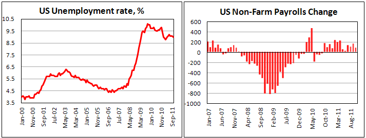Уровень безработицы составил 9,0% в октябре против 9,1% месяцем ранее. Прогнозировалось, что показатель останется на прежнем уровне.