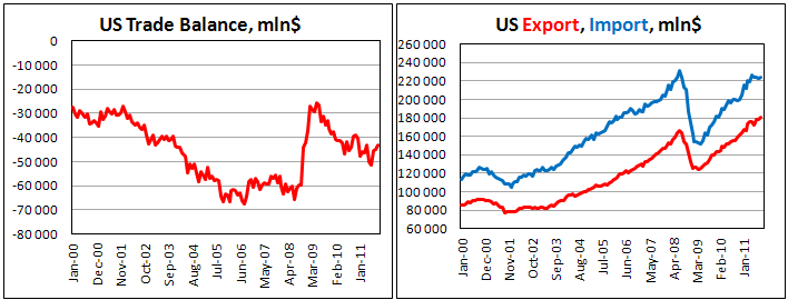По данным Министерства торговли США, дефицит внешней торговли США сократился в сентябре на 4% до $43,1 млрд.