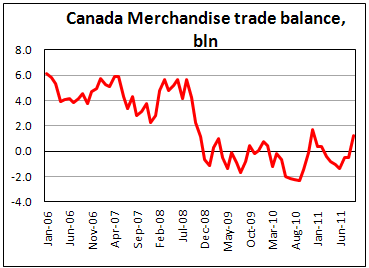 Сальдо торгового баланса Канады оказалось положительным и составило $1,2 млрд. в сентябре после дефицита в размере $0,487 млрд. в августе. Отметим, что торговый баланс Канады оказался профицитным впервые с января текущего года.