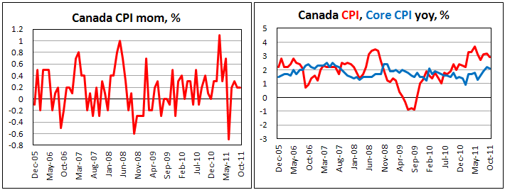 В месячном выражении потребительские цены в Канаде с учетом сезонных колебаний повысились на 0,3% в октябре после роста на 0,4% в сентябре.