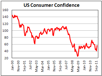Индекс доверия потребителей возрос до отметки 56,0 в ноябре по сравнению с 40,9 в октябре. Экономисты прогнозировали рост показателя лишь до 45,0.
