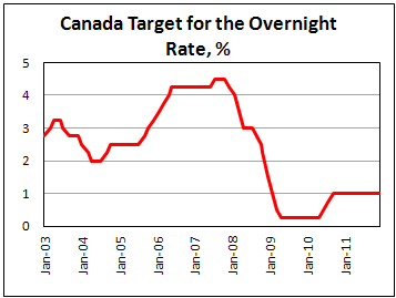 Банк Канады признает ухудшение условий на мировых финансовых рынках на фоне углубления долгового кризиса в Еврозоне. При этом Банк Канады отмечает, что темпы экономического роста в США оказались более значительными, чем прогнозировалось ранее.