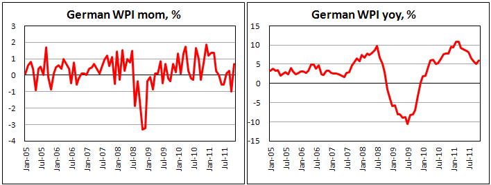 В месячном выражении оптовые цены в Германии возросли на 0,7% в ноябре после снижения на 1,0% в предыдущем месяце.