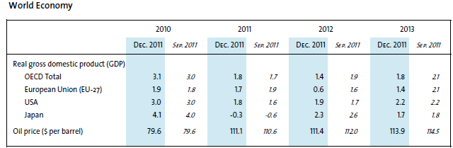Объемы экспорта должны увеличиться на 0,8%, в то время как рост объемов импорта должен составить 2,6% в 2012 году.