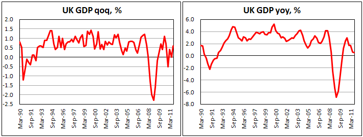 Показатель был скорректирован в сторону повышения по сравнению с первоначальным значением 0,5%. При этом рост ВВП Великобритании в отчетном периоде оказался самым значительным с третьего кварта 2010 года.