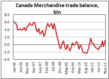 По данным Статистического управления Канады профицит баланса внешней торговли Канады составил 1,1 млрд. долларов за ноябрь 2011 г. Аналитики прогнозировали отрицательное сальдо на уровне 0,5 млрд. долларов.