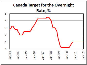 Напомним, что Банк Канады удерживает процентную ставку на отметке 1% с сентября 2010 года.