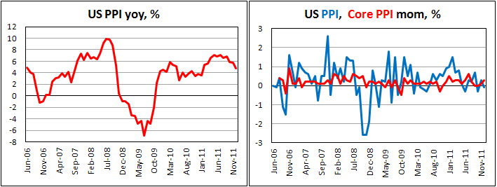 По данным Бюро статистики труда США, индекс цен производителей (PPI) снизился на 0,1% за декабрь 2011 г. в месячном исчислении.