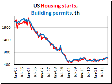 За 2011 год строительство нового жилья в США возросло на 3,4% до 606,9 тыс. по сравнению с 586,9 тыс. в 2010 году.
