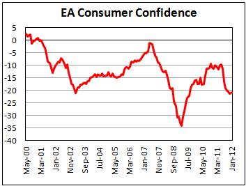 Индикатор потребительской уверенности (Euro-Zone Consumer Confidence) составил -20,6 пункта за январь 2012 г., сообщает Еврокомиссия. Аналитики прогнозировали снижение показателя до 21,4 пункта.