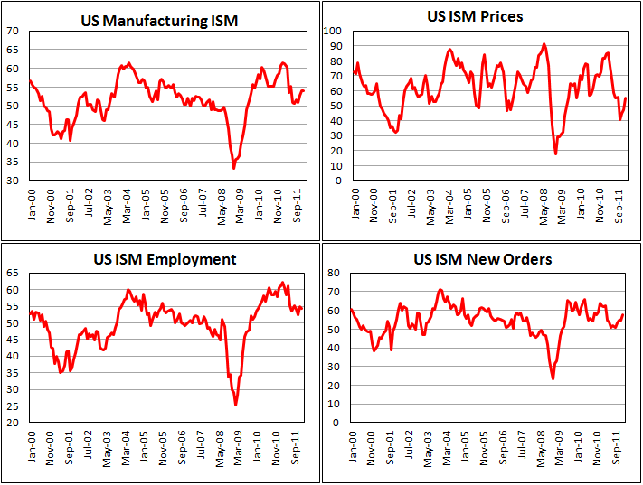 Производственный индекс ISM США составил 54,1 пункта за январь 2012 г. по сравнению с 53,1 пункта в предыдущем месяце. Прогнозировалось повышение показателя до 54,6 пункта.