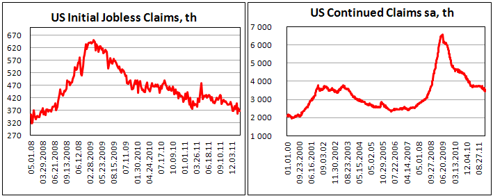 Число повторных заявок на получение пособия по безработице снизилось за неделю к 21 января с 3 567 000 до 3 437 000. Прогнозировалось снижение показателя к 3 560 000.