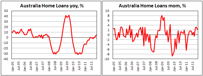 Объем ипотечного кредитования в Австралии увеличился на 2,3% за декабрь 2011 г. в месячном исчислении, сообщает Австралийское управление статистики. Аналитики прогнозировали повышение показателя на 1,9%. В предыдущем месяце индекс вырос на 1,8%.