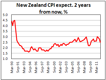 - Ожидаемая инфляция в Новой Зеландии через два года снизилась до 2,5%