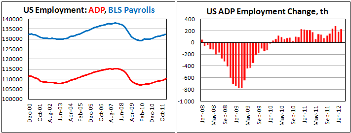 Рост занятости в частном секторе экономики США продолжился в феврале. По данным ADP Inc., число рабочих мест в частном секторе увеличилось на 216,0 тыс. в отчетном периоде благодаря сектору услуг и малому бизнесу.