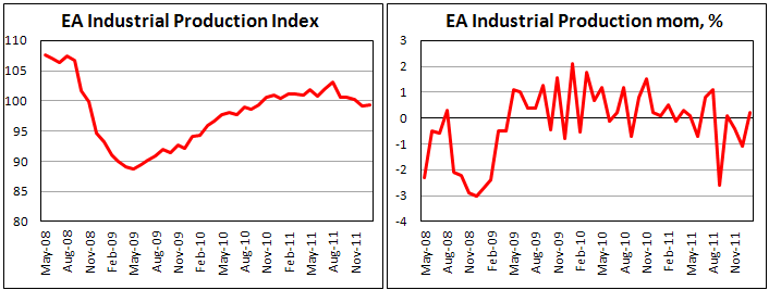 По данным агентства Евростат, объемы промышленного производства в Еврозоне увеличились на 0,2% в январе.