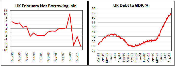 Чистый объем заемных средств государственного сектора Великобритании (Public Sector Net Borrowing) составил 12,9 млрд. фунтов за февраль 2012 г. по сравнению с -7,9 млрд. фунтов в январе, сообщает Национальное статистическое управление. Показатель прогнозировался на уровне 5,2 млрд. фунтов.