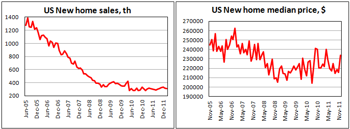 По данным Бюро переписи и Министерства жилищного строительства и городского развития, объем продаж на первичном рынке жилья составил 313 000 за февраль 2012 г., на 1,6% меньше, чем в предыдущем месяце.