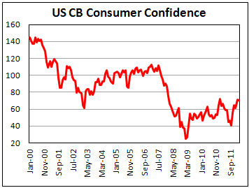 Индекс доверия потребителей упал до отметки 70,2 в марте по сравнению с 71,6 в феврале.