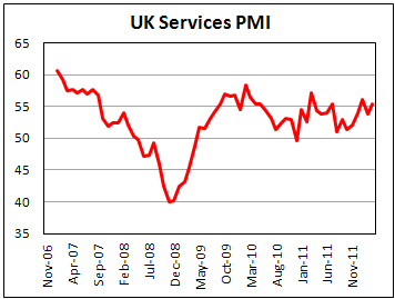Индекс PMI для сектора услуг с учетом сезонных колебаний возрос до 55,3 в марте по сравнению с 53,8 в феврале.