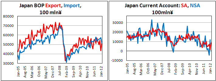 В феврале 2012 г. положительное сальдо текущего счета платежного баланса Японии с учетом сезонных колебаний составило 854,1 млрд. иен, сообщает Министерство финансов Японии.