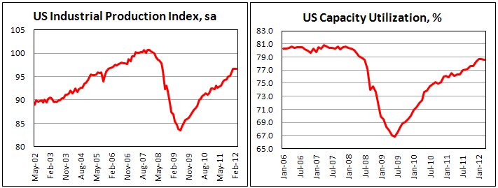 Объем промышленного производства США не изменился за март 2012 г., также как и в феврале, сообщает Федеральная резервная система. Аналитики прогнозировали повышение показателя на 0,4% также.